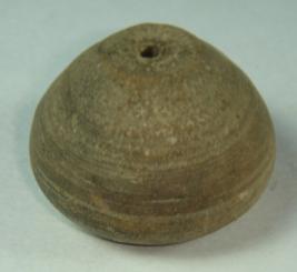 | Description / विवरण | Well fired, perforated, betel nut shaped terracotta bead with a depression at the base. Concentric circles are present on the body. |