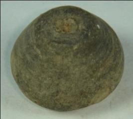 | Description / विवरण | Terracotta bead, in pot shaped body, mouth and base are flat and circular. This totally mutilated and there is a perforated hole in the centre. |