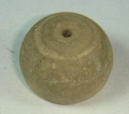 | Description / विवरण | Plain, perforated, betel nut shaped terracotta bead with a incised circle on the top. |