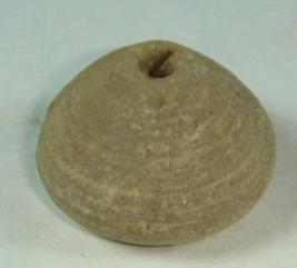 | Description / विवरण | Perforated, betel nut shaped terracotta bead with concentric circles around the body. |