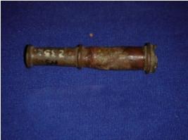 | Description / विवरण | Copper spout with a hole at the bottom end and circular embossed design is seen at the body. |