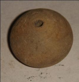 | Description / विवरण | Terracotta perforated betel nut shaped bead with a circular deep depression on the base. |