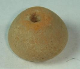 | Description / विवरण | Plain, perforated, betel nut shaped terracotta bead with slight depression at the base. |