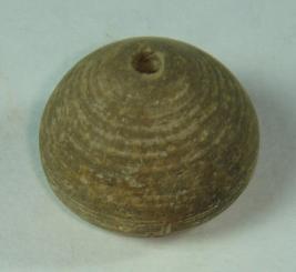 | Description / विवरण | Perforated terracotta bead, betel nut in shape, with a depression at the base. Close concentric circles are present on the body. |