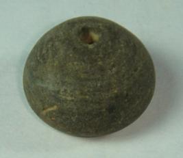 | Description / विवरण | Plain, perforated terracotta bead, betel nut in shape with slight depression at the base. |