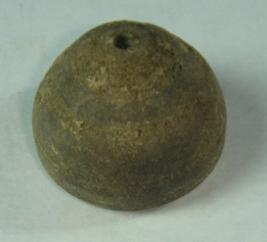| Description / विवरण | Plain, perforated, betel nut shaped terracotta bead, with a depression at the base. Its surface is corroded. |