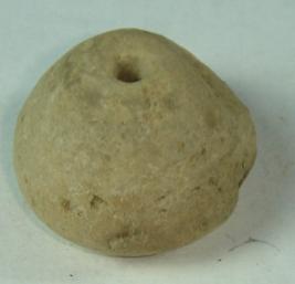 | Description / विवरण | Plain, perforated, betel nut shaped terracotta bead with a depression at the base. Its surface is partially flaked off. |