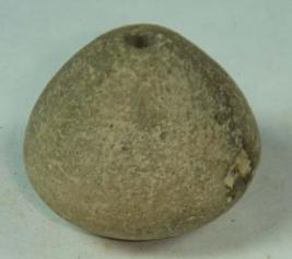 | Description / विवरण | Perforated terracotta bead, betel nut in shape, base is that surface is rough, clay incrustation all over. |