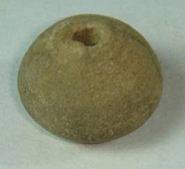 | Description / विवरण | Perforated, betel nut shaped terracotta bead with a depression at the base. It is slightly flaked off on the top. It is ill fired. |
