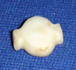| Description / विवरण | Pitcher shaped shell bead, with flat body and a vertical perforation in centre. |