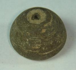| Description / विवरण | Well made, perforated, betel nut shaped terracotta bead with slight depression at the base. A tiny pit is visible at the lower part. |