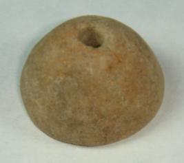 | Description / विवरण | Perforated terracotta bead, betel nut in shape, flat base the surface is smooth. |