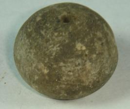 | Description / विवरण | Perforated terracotta bead, betel nut in shape, base is flat, surface is rough and clay incrustation all over. |
