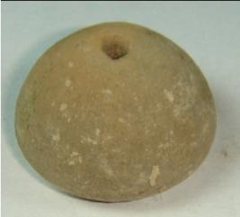 | Description / विवरण | Perforated terracotta bead, betel nut body with a flat base. |