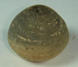 | Description / विवरण | Perforated terracotta bead, betel nut in shape depression at the base, surface is rough clay incrustation on some part. |