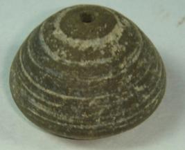 | Description / विवरण | Perforated terracotta bead, betel nut in shape, slight depression at base, incised concentric circles on upper part, surface is smooth clay incrustation over concentric lines. |