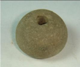 | Description / विवरण | Perforated terracotta bead, betel nut body base is slightly depressed. |