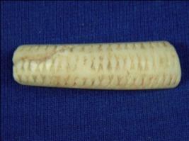 | Description / विवरण | Fragment of an ivory bangle. The outer rim has incised rhombus design in lines. There is a crack too. The inner rim has slanting edge. |
