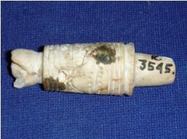 | Description / विवरण | Shell stop cork having flower design at the top and incised leaves and creeper designs on the body and an extended part at the bottom to fix it with the container. |