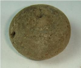 | Description / विवरण | Perforated terracotta bead betel nut body, base with slight depression. |
