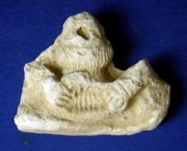 | Description / विवरण | Fragment of a lime human figurine in high relief. Only the head is visible. It is probably Shiva having Jata mukuta, the eyes and lips are prominent but the nose portion is broken. |