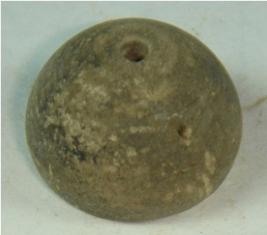| Description / विवरण | Perforated terracotta bead, betel nut body, with a flat base. |