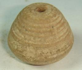 | Description / विवरण | Perforated terracotta bead pot-shaped having striation marks on the entire body. |