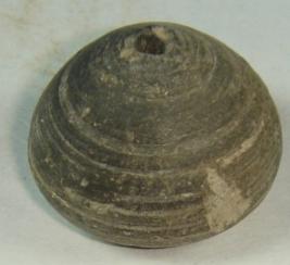 | Description / विवरण | Perforated terracotta bead, pot-shaped striation marks on the entire body. |