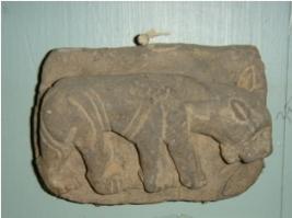 | Description / विवरण | Stone animal figurine, probably a leopard, carved in low relief. All the features except mouth is prominent and it is facing left. |