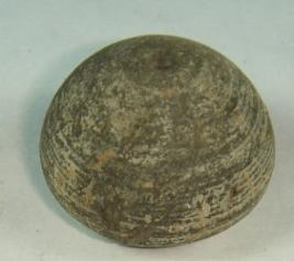 | Description / विवरण | Perforated terracotta bead. betel nut in shape, striation mark at the middle and base. |