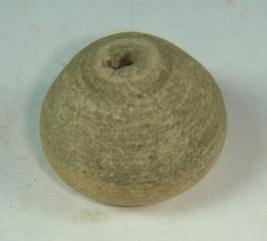 | Description / विवरण | Simple perforated terracotta bead, pot-shaped ill fired. |
