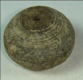 | Description / विवरण | Perforated terracotta bead, biconvex body with slight depression at two ends. |