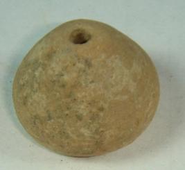 | Description / विवरण | Simple perforated terracotta bead, pot-shaped, striation marks above the base. |