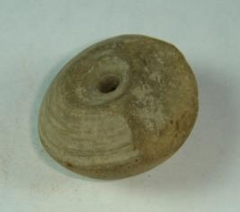 | Description / विवरण | Simple perforated terracotta bead, biconvex in shape, prominent striation marks on one end, it is flaked off. |