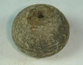 | Description / विवरण | Coarse perforated terracotta bead, betel nut in shape, having clay incrustation. |