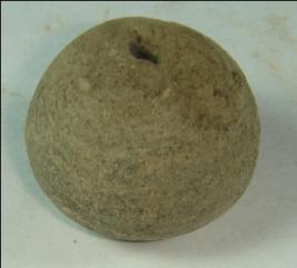 | Description / विवरण | Spherical perforated terracotta bead with slightly flattened poles. |