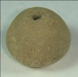 | Description / विवरण | Perforated terracotta bead, betel nut body, base with slight depression. |