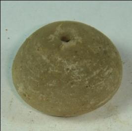 | Description / विवरण | Perforated terracotta bead, betel nut body, base with slight depression. Base is slightly rubbed off. |