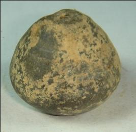 | Description / विवरण | Perforated terracotta bead, biconvex body, base with slight depression. |