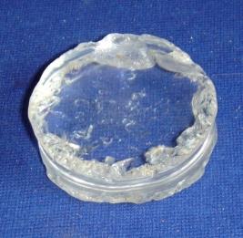 | Description / विवरण | Crystal disc, flat and circular in shape with concave body. Edges of it is slightly chipped off. it may be they can make bead |