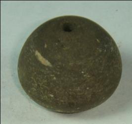 | Description / विवरण | Perforated terracotta bead, betel nut in shape, depression at the base surface is smooth. |