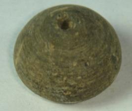 | Description / विवरण | Perforated terracotta bead, betel nut in shape, striation mark just above the base. |