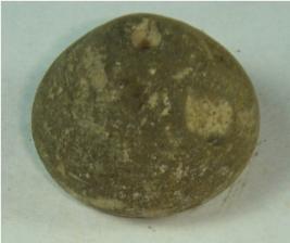 | Description / विवरण | Perforated terracotta bead, betel nut in shape, base is flat, surface is rough, clay incrustation all over. |