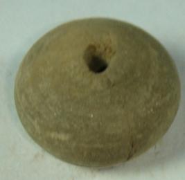 | Description / विवरण | Plain perforated terracotta bead, biconvex in shape, cracked at on end. |