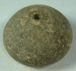 | Description / विवरण | Plain perforated terracotta bead, pot-shaped having striation marked at the base. |