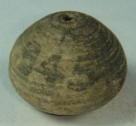 | Description / विवरण | Perforated terracotta bead, having pot like shape with deep depression at the top, spiral lines all over the body. Pits on the body of the bead. |