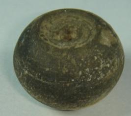| Description / विवरण | Perforated terracotta bead, having pet like shape with deep depression at the top, surface is rough and ill fired. |