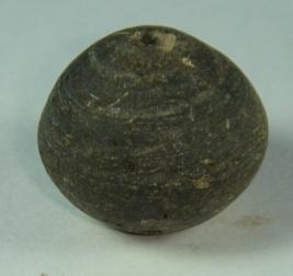 | Description / विवरण | Perforated terracotta bead, having pot like shape with deep depression at the top, surface is rough with mile striation marks. |
