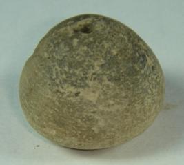 | Description / विवरण | Pot shaped, perforated terracotta bead with deep depression at the top, surface is rough. |