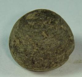 | Description / विवरण | Perforated terracotta bead, having rough surface, shallow depression at the top, base is slightly broken. |